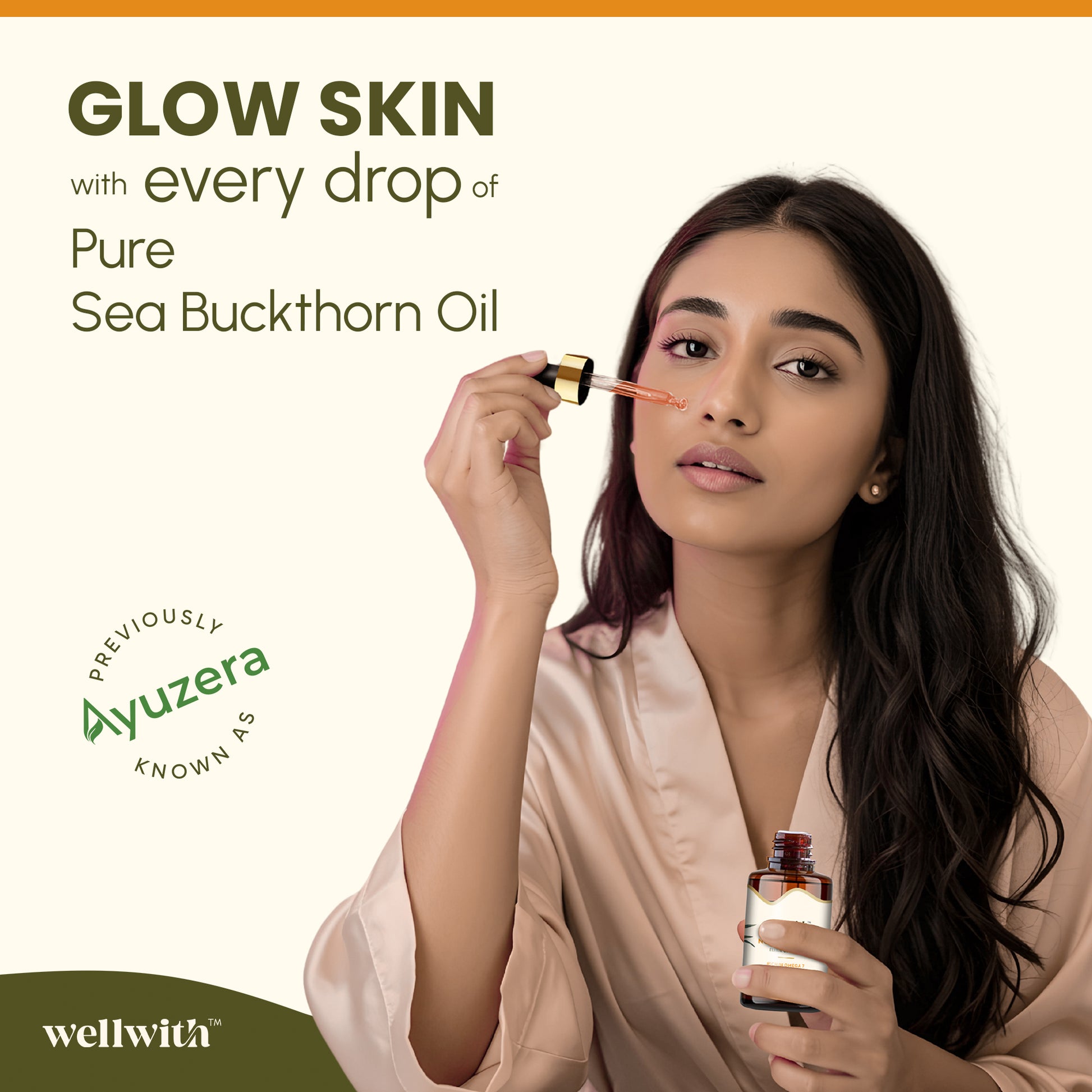 A pure, CO₂-extracted sea buckthorn oil rich in essential nutrients, designed to hydrate, repair, and rejuvenate skin and hair with just a few nightly drops.